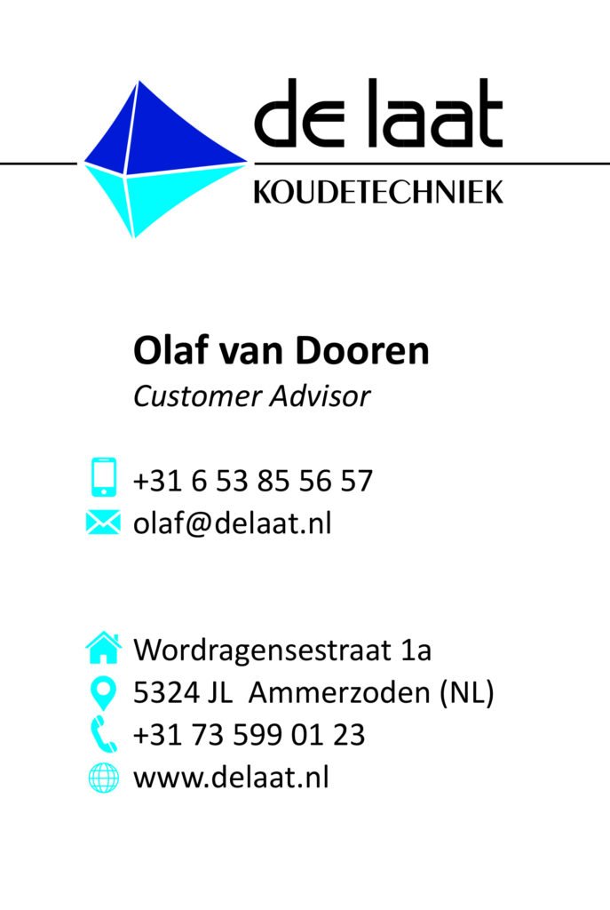 Tijdens mijn stage bij Axzent Reclame heb ik voor De Laat koudetechniek een ontwerp gemaakt voor de nieuwe visitekaartjes.